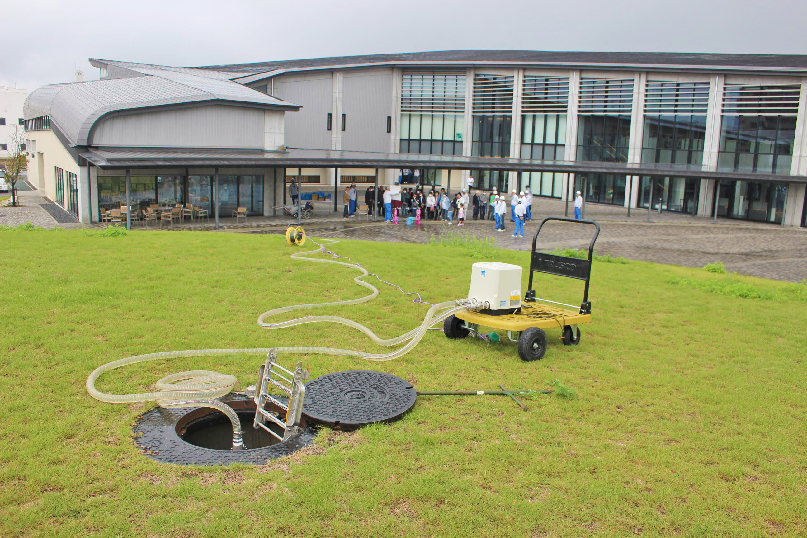 敷地内に埋設されている耐震性貯水槽からの取水を実演