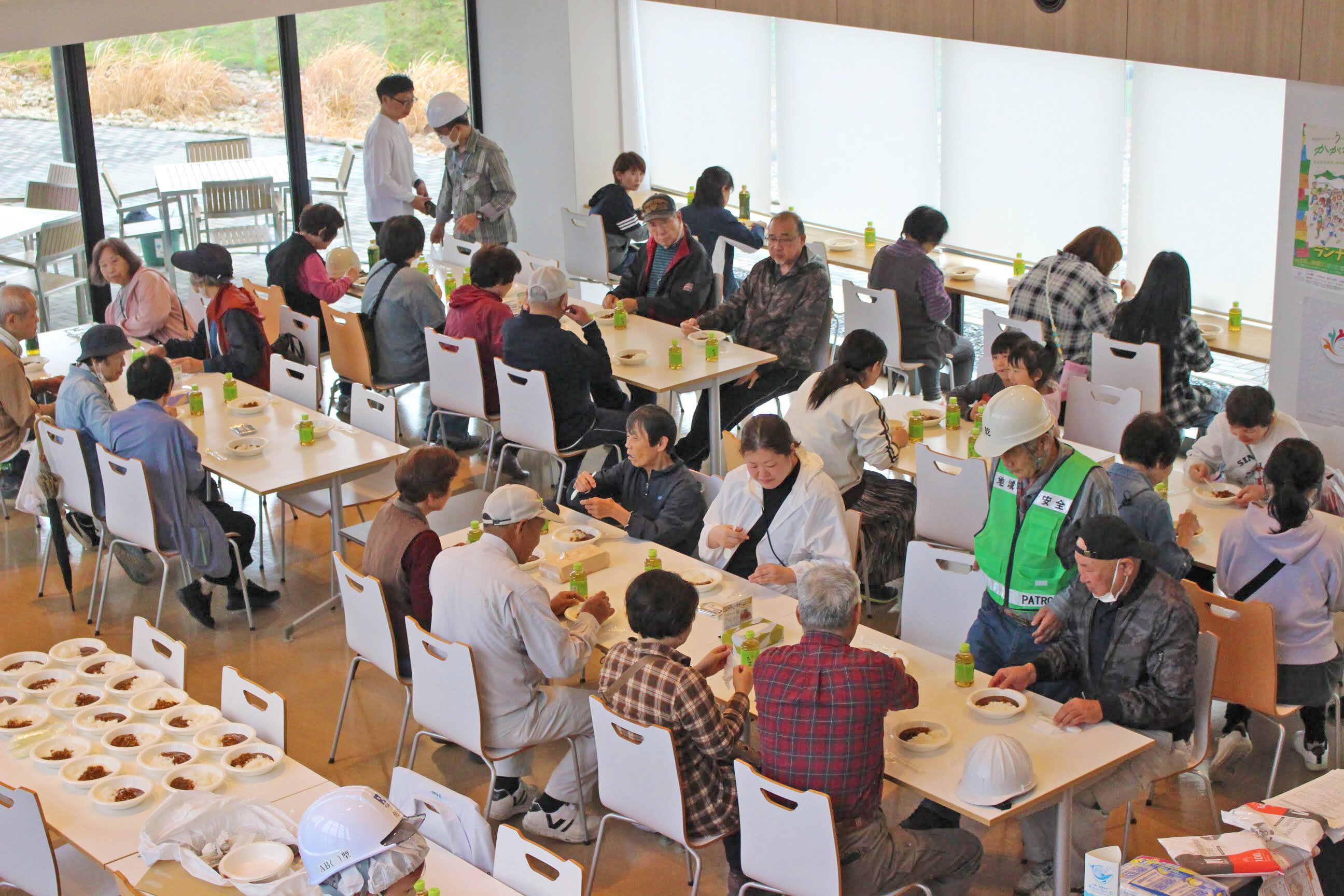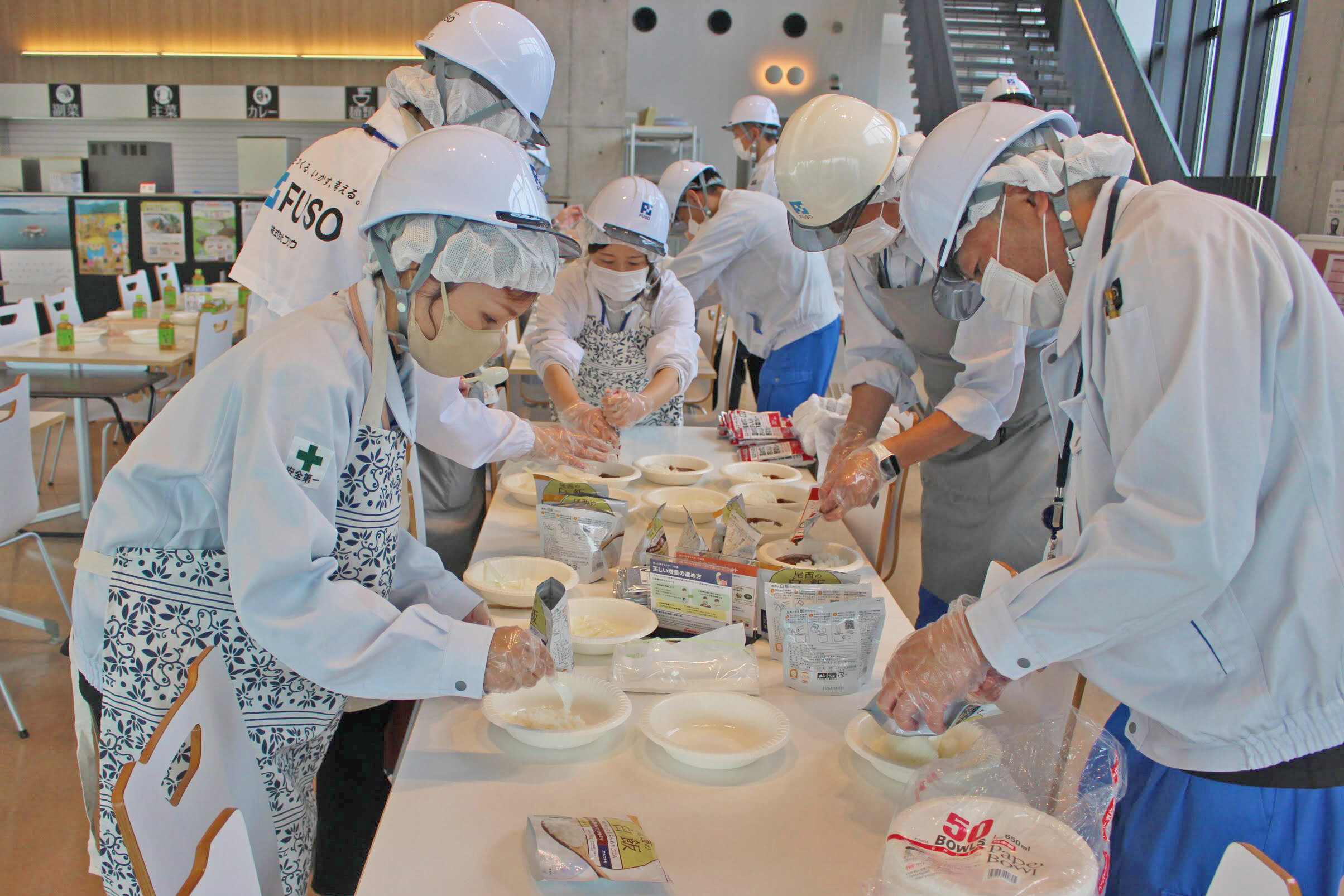 普段から一般開放している弊社食堂にて、防災食を喫食