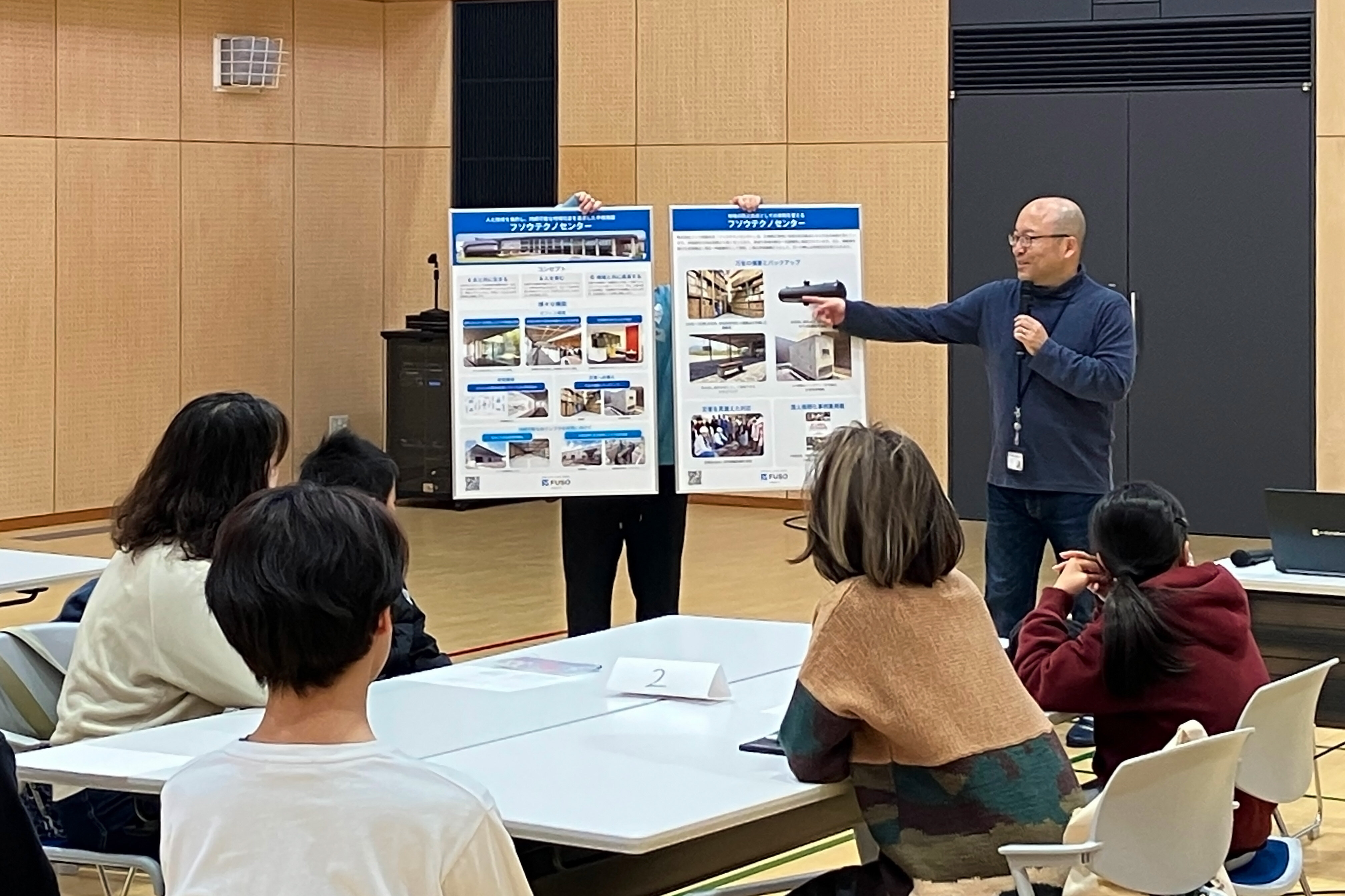フソウテクノセンターは、当社の四国本社としてソリューション創出拠点であると同時に、南海トラフ地震等の大規模災害時に、備蓄庫を備えた体育館の1階を「一次避難所」、2階を「津波避難ビル」として地域住民に開放する体制を整えています。また、防災拠点であることを地域に周知し、有事の際に気兼ねなく避難できるよう普段から食堂を一般開放しています。これらの取り組みは、内閣官房「国土強靭化 民間の取組事例集」(令和5年4月発行)において、防災拠点機能を備えた地域コミュニケーションの場として紹介されております。本イベントの趣旨に適った施設であることから、プログラムや施設の活用について学生団体との意見交換を経て開催が実現しました。