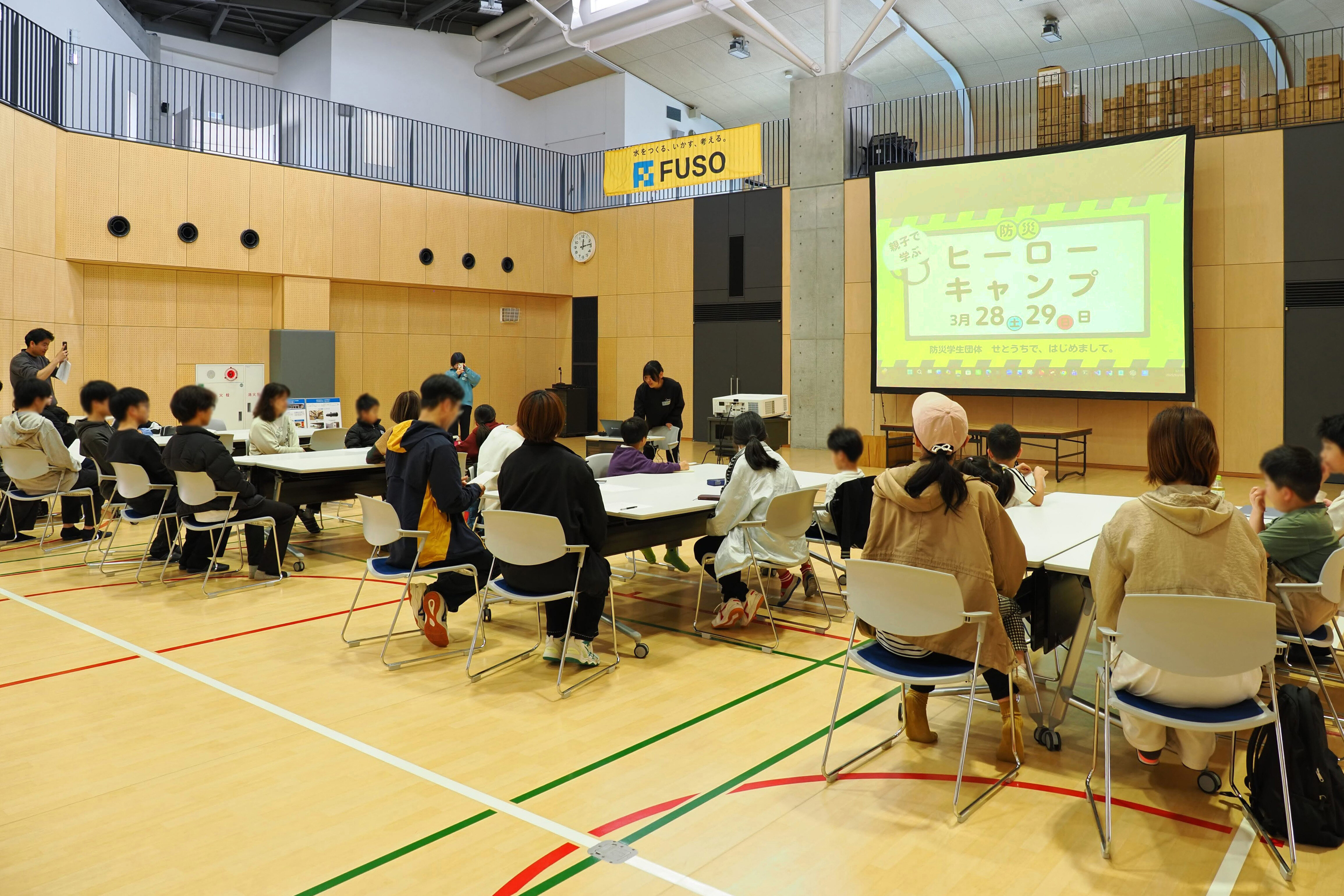 3月28日(土)~29日(日)、フソウテクノセンター(高松市)にて、実践型防災イベント「親子で学ぶ ヒーローキャンプ」が開催され、小学生とその保護者17名が参加しました。香川大学生を中心とした防災学生団体「せとうちで、はじめまして。」主催の本イベントは、株式会社日本総険トラストテクノロジーズおよび株式会社フソウの協賛、高松市、高松市教育委員会、インフラメンテナンス国民会議四国地方フォーラムの後援のもと、宿泊を伴う2日間の日程で実施されました。