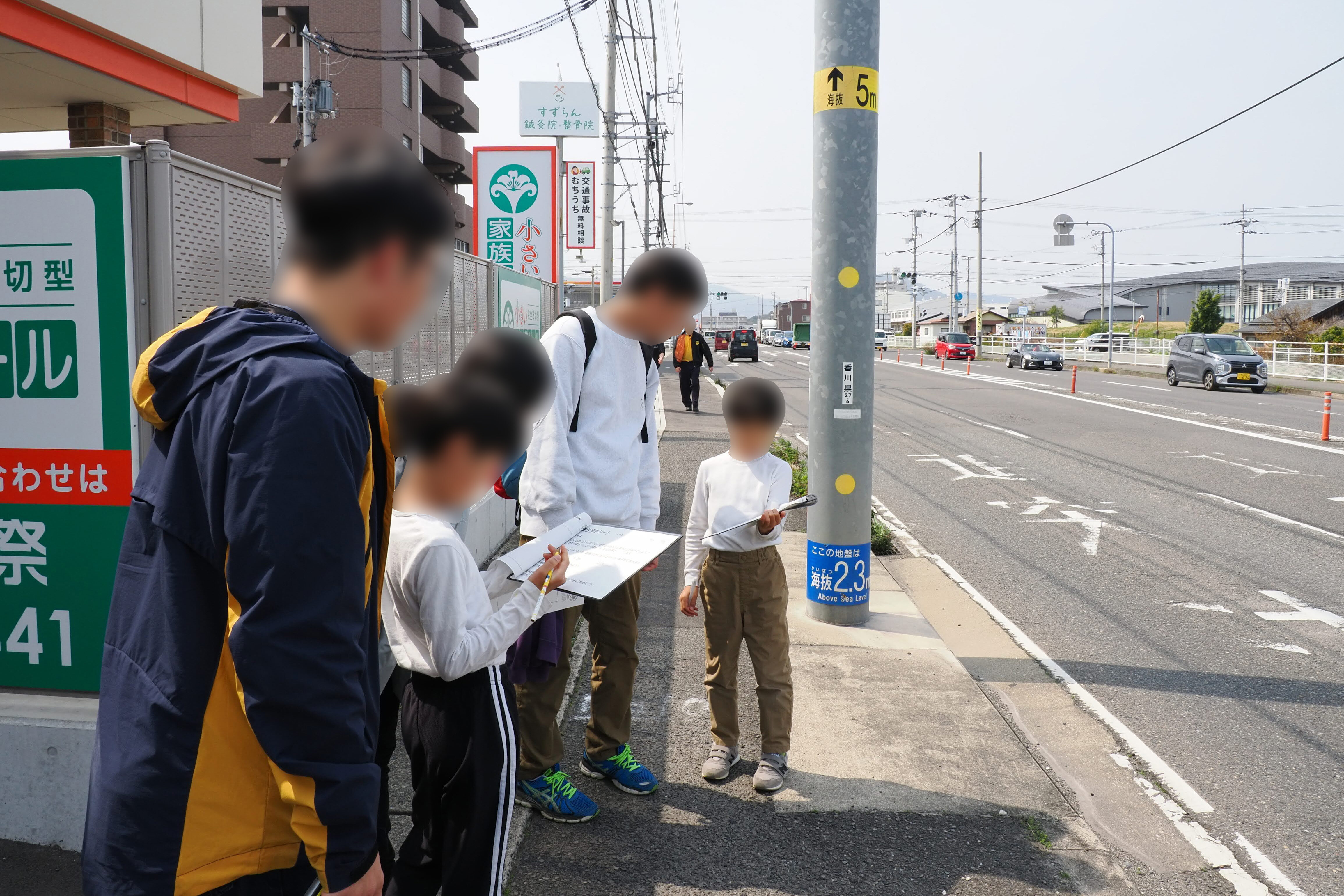 「まち歩きを通じた危険箇所の発見」に親子で取り組む様子