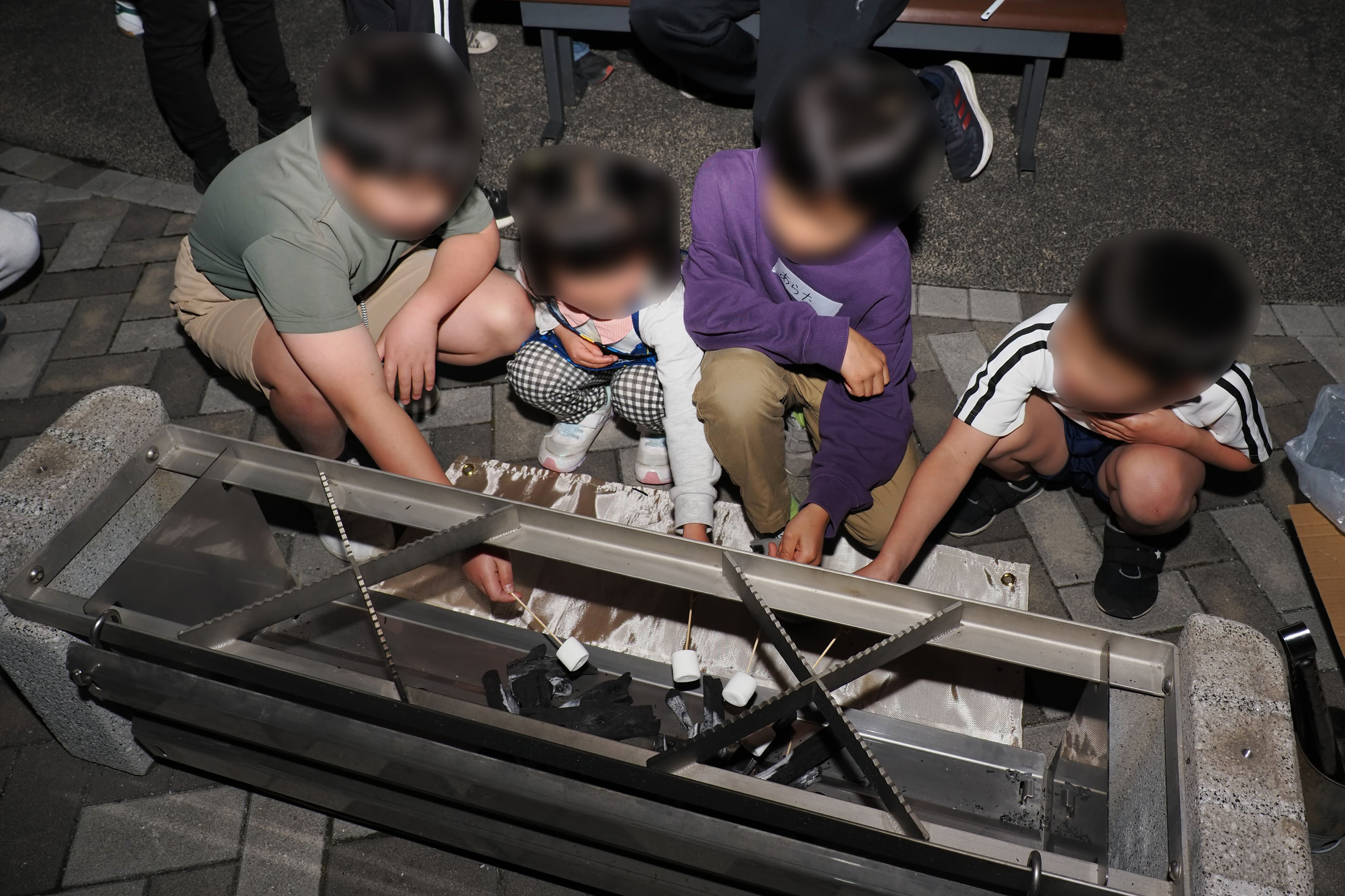 災害時に炊き出し設備となる「かまどベンチ」を実際に使用