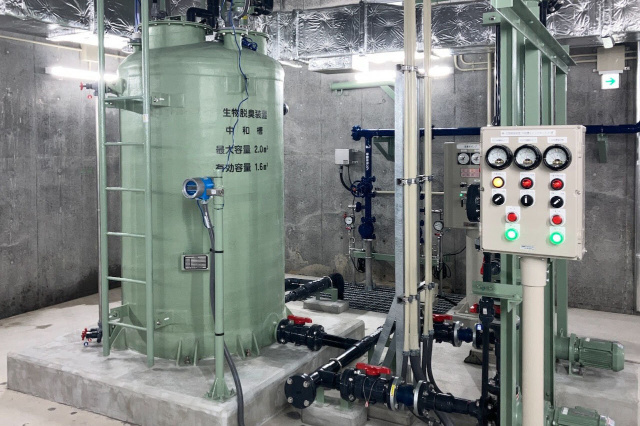 本工事は、後志地方の4町1村(積丹町、古平町、仁木町、余市町、赤井川村)が利用する既設のし尿処理場の老朽化に伴い、下水道広域化推進総合事業を利用し、し尿を余市下水処理場で処理するための施設を新設する事業のうちの機械設備一式です。
